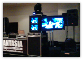 We have a range of plasma panel screens or projection screens that can be located all around your venue and can be used to display a variety of different media including DVD videos, photo slide shows, powerpoint presentations or even live capture video.