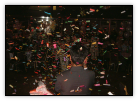 at a crescendo point of the song a thousand or so pieces of fluttering confetti sails