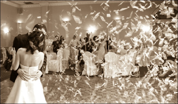 the confetti blast. Imagine the bride and groom come out for their first dance and